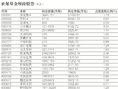 數(shù)據(jù)來(lái)源:Wind資訊(注:表中數(shù)據(jù)截止日期為2011年12月31日。截至去年三季度,社;鸸灿(jì)在365家公司的前十大流通股東名單中出現(xiàn)。) 全國(guó)社;鹄硎聲(huì)理事長(zhǎng)戴相龍昨日表示,社;8年投資股票累計(jì)獲得投資收益1326億元,占全部投資收益的46%,年化投資收益率達(dá)到18.61%,比全部基金累計(jì)平均收益率高出10個(gè)多百分點(diǎn)。
