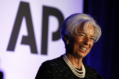 4月3日,國際貨幣基金組織(IMF)總裁拉加德在美國華盛頓召開的美聯(lián)社年會上發(fā)言。 拉加德表示,近期歐美等發(fā)達國家出現(xiàn)經(jīng)濟改善跡象,但是全球經(jīng)濟復蘇勢頭仍然脆弱,當前不宜讓經(jīng)濟刺激政策過早剎車。