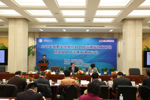 圖為“中國15個城市4個重點(diǎn)行業(yè)新華經(jīng)參仕邦人力資源指數(shù)年度報(bào)告”發(fā)布會現(xiàn)場。 |