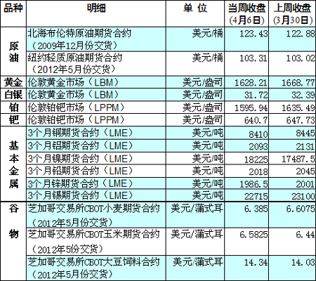 國際大宗商品期貨價(jià)格明細(xì)表[2012-04-09]