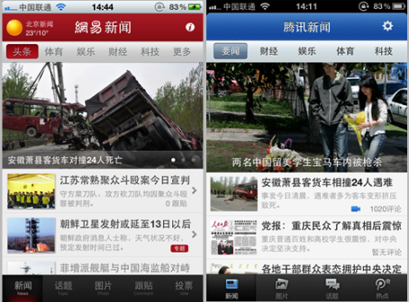 騰訊網(wǎng)易新聞客戶端界面對比