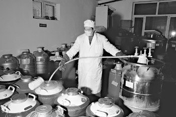 天山生物多年從事種公牛凍精生產(chǎn),擁有一支技術(shù)精良、實(shí)踐經(jīng)驗(yàn)豐富的專業(yè)技術(shù)人員隊(duì)伍。公司凍精生產(chǎn)全部采用進(jìn)口設(shè)備,其中從德國引進(jìn)的米尼圖全套凍精生產(chǎn)線達(dá)到世界先進(jìn)水平,凍精檢測(cè)設(shè)備達(dá)到國內(nèi)領(lǐng)先水平。公司多次承擔(dān)國家和新疆自治區(qū)星火項(xiàng)目、重點(diǎn)科研及推廣項(xiàng)目并多次獲得獎(jiǎng)勵(lì)。