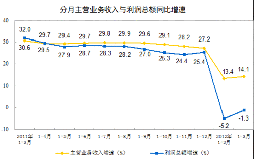 圖為分月主營(yíng)業(yè)務(wù)收入與利潤(rùn)總額同步增速示意圖