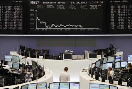 由于希臘新政府組閣失敗,有關(guān)該國(guó)是否會(huì)退出歐元區(qū)的擔(dān)憂重壓市場(chǎng)。全球股市14日多數(shù)下跌,中國(guó)香港股市恒生指數(shù)下跌229.59點(diǎn),收于19735.04點(diǎn),跌幅為1.15%。歐美股市開(kāi)盤大跌,截至發(fā)稿時(shí),英國(guó)、法國(guó)、德國(guó)主要股指跌幅均超過(guò)2%,美國(guó)三大股指跌幅也接近1%。