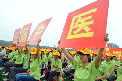 廣西中醫(yī)藥大學(xué)建校于1956年,其前身為1934年成立的廣西壯族自治區(qū)立醫(yī)藥研究所,是廣西乃至全國創(chuàng)辦較早的高等中醫(yī)藥院校之一。2012年3月29日,國家教育部正式下文,批準廣西中醫(yī)學(xué)院更名為廣西中醫(yī)藥大學(xué),明確廣西中醫(yī)藥大學(xué)為多科性本科學(xué)校。圖為在廣西中醫(yī)藥大學(xué)揭牌慶典大會上,幾名學(xué)生舉起標語為揭牌慶賀。