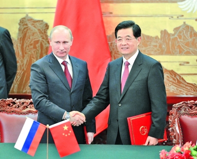 胡錦濤與俄總統(tǒng)普京共同出席兩國相關(guān)合作文件簽字儀式