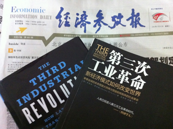 《第三次工業(yè)革命》作者、美國經(jīng)濟(jì)學(xué)家杰里米·里夫金日前在接受《經(jīng)濟(jì)參考報(bào)》越洋電話專訪時(shí)指出,隨著第三次工業(yè)革命的演進(jìn),洲際經(jīng)濟(jì)和政治聯(lián)盟將加速形成,作為樣本的歐盟不會(huì)因?yàn)楫?dāng)前的債務(wù)危機(jī)和緊縮困局放慢腳步,亞洲地區(qū)則有可能成為第三次工業(yè)革命的潛在引領(lǐng)者。