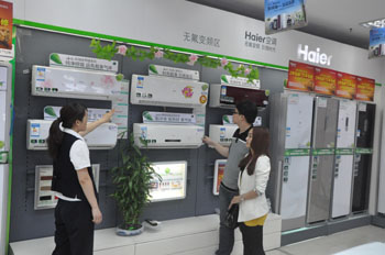 因?yàn)楣?jié)能補(bǔ)貼政策實(shí)施,青島的尹小姐購買海爾1級(jí)能效變頻空調(diào)時(shí)少花了400元。資料照片 |