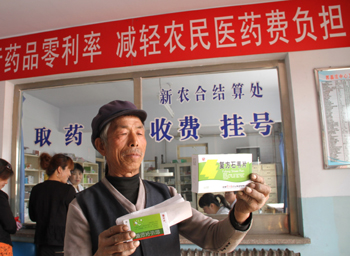 在河北省萬全縣郭磊莊中心衛(wèi)生院,一名患者在購買零差率銷售的藥品。新華社記者 鞏志宏