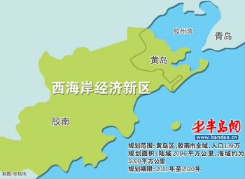 去年1月,國務(wù)院批準(zhǔn)《山東半島藍(lán)色經(jīng)濟(jì)區(qū)發(fā)展規(guī)劃》,山東半島藍(lán)色經(jīng)濟(jì)區(qū)建設(shè)上升為國家戰(zhàn)略。繼而青島市委、市政府把西海岸經(jīng)濟(jì)新區(qū)規(guī)劃建設(shè)納入藍(lán)色經(jīng)濟(jì)區(qū)戰(zhàn)略的核心內(nèi)容。今年1月31日,青島西海岸經(jīng)濟(jì)新區(qū)黨工委、管委會正式成立,新區(qū)開發(fā)建設(shè)全面啟動。3月,青島市發(fā)布《青島西海岸經(jīng)濟(jì)新區(qū)發(fā)展規(guī)劃》。規(guī)劃顯示,新區(qū)范圍為青島開發(fā)區(qū)、膠南市全域,陸域面積2096平方公里,海域面積約5000平方公里,常住人口139萬,規(guī)劃期限2011年至2020年。