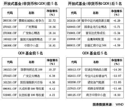 除此之外,64只封閉式基金平均凈值增長7.81%;79只貨幣市場基金平均凈值增長2.20%,折算年平均收益率超過4%;21只保本型基金平均凈值上漲3.55%;51只QDII平均凈值則下跌了1.59%,成為了各類基金產品中為一整體出現(xiàn)下跌的類型。