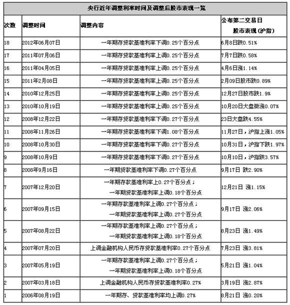 附:央行近年調(diào)整利率時間及調(diào)整后股市表現(xiàn)(來源:中國證券網(wǎng))