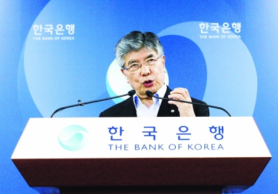 圖為韓國銀行行長金仲秀當(dāng)天在首爾舉行新聞發(fā)布會。