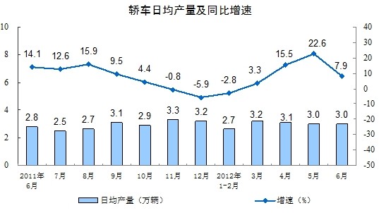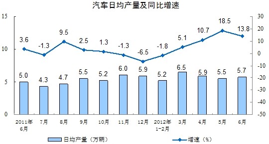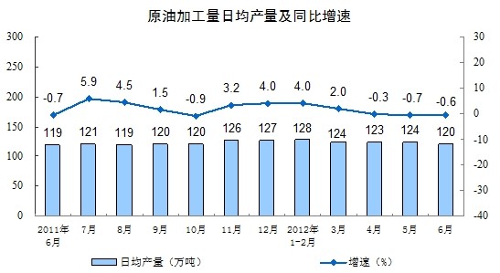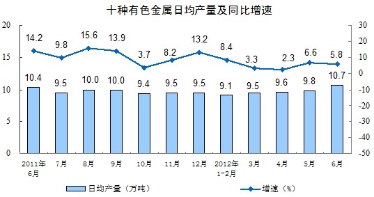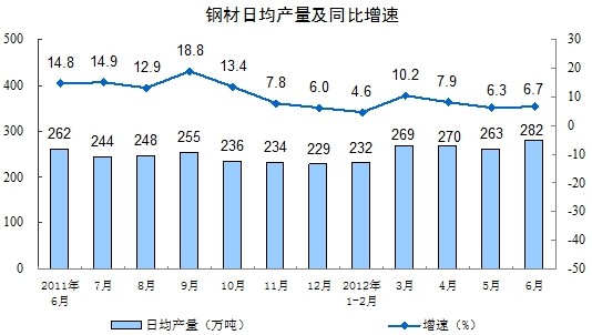 分產(chǎn)品看,6月份,471種產(chǎn)品中有321種產(chǎn)品同比增長。其中,鋼材8447萬噸,增長6.7%;水泥20717萬噸,增長6.5%;十種有色金屬322萬噸,增長5.8%;汽車169.5萬輛,增長13.8%;轎車90.4萬輛,增長7.9%;發(fā)電量3934億千瓦時,與去年同月持平;原油加工量3598萬噸,下降0.6%;乙烯118萬噸,下降3.3%。