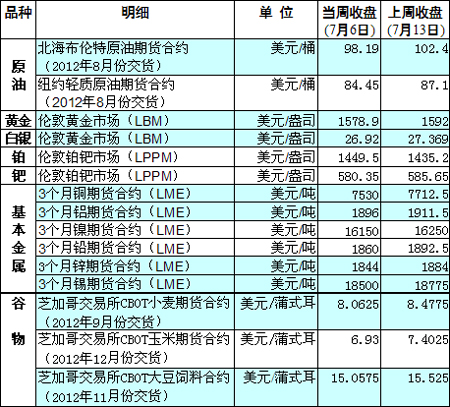 國際大宗商品期貨價格明細表[2012-07-16]