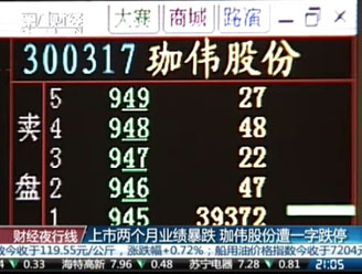 揚(yáng)韜:珈偉股份今年5月11日才上市,一個(gè)多月后,公司預(yù)告上半年利潤同比下滑95%,股價(jià)直接跌停。公司給的理由是美國天氣不好,導(dǎo)致銷售下滑所以利潤不濟(jì)。這還是新股嗎?這是“假偽股份”啊。