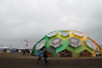 圖為正在舉行的第四十二屆羅斯基勒音樂節(jié)現(xiàn)場,利用獨(dú)特設(shè)計(jì)自然采光照明的青年休閑娛樂中心。今年的音樂節(jié)到處閃耀著環(huán)保節(jié)能的光輝。記者 楊敬忠