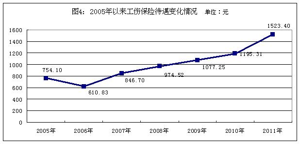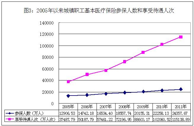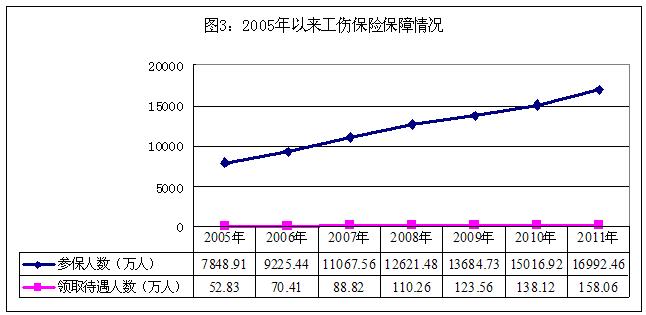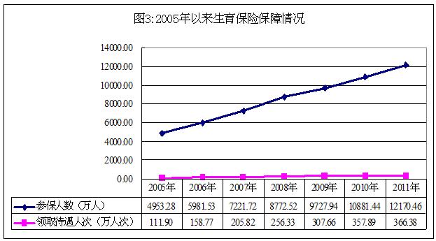 170.46萬人,比2005年增加7217.18萬人,增長145.71%;2011年全年享受生育保險(xiǎn)待遇366.38萬人次,比2005年增加254.48萬人次,增長227.42%(見圖3)。