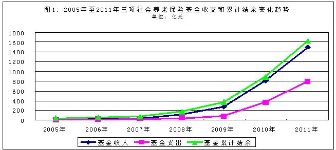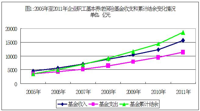 2011年,全國企業(yè)職工基本養(yǎng)老保險(xiǎn)基金收入共計(jì)15 603.58億元,比2005年增長243.51%;支出11