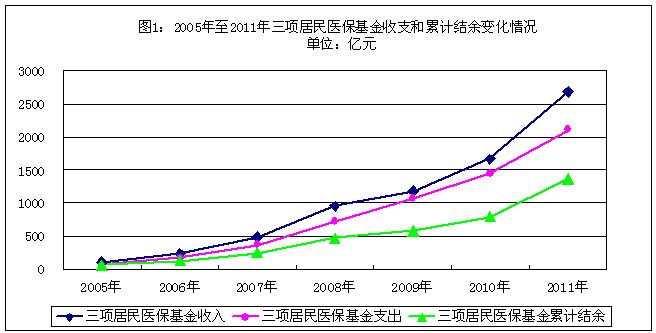 303.72億元,比2005年底增長4.34倍,年均增長32.19%,98%存放在金融機(jī)構(gòu)(2005年至2011年各項(xiàng)社會(huì)保險(xiǎn)基金累計(jì)結(jié)余變化情況見圖11)。