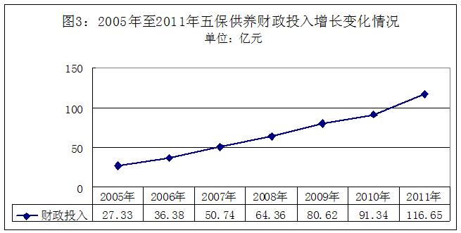 (一)財(cái)政投入逐年加大,五保供養(yǎng)資金得到有效保障。