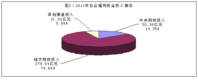 從資金來源看,2011年,中央財(cái)政、地方財(cái)政和其他渠道分別投入50.36億元、279.54億元和21.02億元,分別占14.35%、79.66%和5.99%(見圖2)。