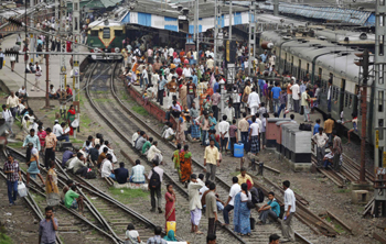 7月31日,在印度加爾各答的一座火車站,乘客們等候鐵路系統(tǒng)恢復工作。新華社/路透 |