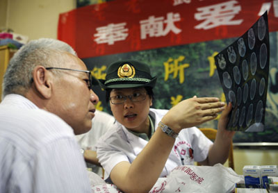武警新疆邊防總隊醫(yī)院的醫(yī)生日前來到烏魯木齊市的友好新村幸福老年公寓開展愛民義診活動。來自外科、內(nèi)科、口腔科和中醫(yī)保健科的醫(yī)生為生活在這里的八十多位老人進行了體檢,并免費贈送了針對老年疾病的醫(yī)藥和保健品。這也是武警新疆邊防總隊醫(yī)院連續(xù)十二年到幸福老年公寓開展愛民義診活動。