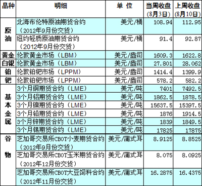 黃金市場方面,近幾周一直在1600美元上下震蕩。由于中國7月份進出口增速放緩,加劇市場投資者對新一輪量化寬松貨幣政策的預期,紐約黃金期貨合約價格10日繼續(xù)上行,小幅收高。