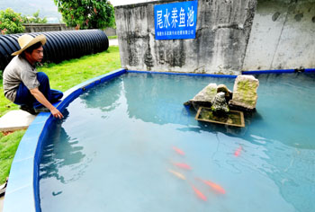 福建長(zhǎng)樂(lè)亞新污水處理有限公司處理后的尾水養(yǎng)魚池。記者