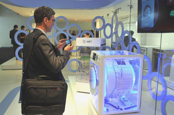9月1日,一位參觀者在2012IFA海爾展廳拍攝海爾新概念洗衣機(jī)。記者 王平平