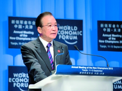 世界經(jīng)濟(jì)論壇2012年新領(lǐng)軍者年會(第六屆夏季達(dá)沃斯論壇)11日下午在天津梅江會展中心開幕,國務(wù)院總理溫家寶出席開幕式并致辭。