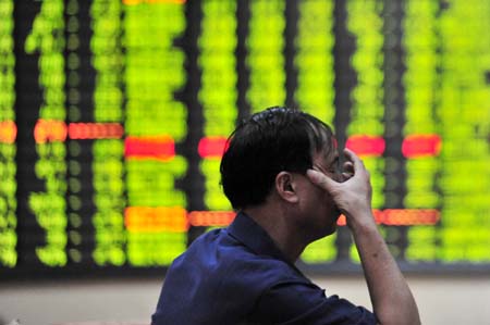 9月17日,一名股民在江西省九江市一證券營業(yè)廳關注股市行情。 當日,上證綜指以2120.62點小幅低開,全天呈現(xiàn)震蕩走低態(tài)勢。盤中滬指2100點整數位輕易告破,午后下跌速度有所加快。尾盤滬指收報2078.50點,較前一交易日跌45.35點,跌幅達2.14%。深證成指大跌256.36點至8483.69點,跌幅達到2.93%。