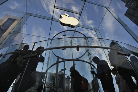 9月19日,顧客造訪美國紐約第五大道上的蘋果公司商店。 美國蘋果公司說,在iPhone5手機放開預(yù)訂首日,接到的預(yù)訂數(shù)量超過200萬部,大部分預(yù)訂貨品將于21日發(fā)給客戶。