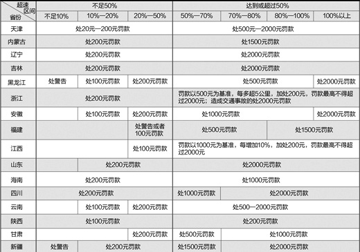 部分省份對(duì)高速公路超速的罰款規(guī)定。數(shù)據(jù)整理:郝迎燦