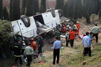 10月7日,我國青銀高速淄博段交通事故致13人死亡,9人重傷。消防官兵在車禍現場組織救援。新華社發(fā) |