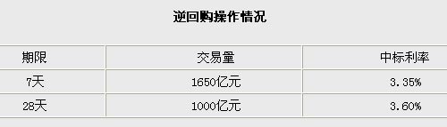 央行網(wǎng)站9日發(fā)出公告指出,中國人民銀行于本周二(10月9日)以利率招標方式開展了逆回購操作。逆回購總規(guī)模達到2650億元。其中,7天期逆回購1650億元,中標利率為3.35%;28天期逆回購1000億元,中標利率3.60%。