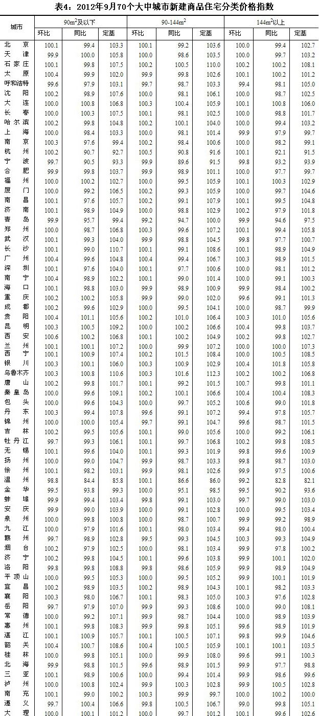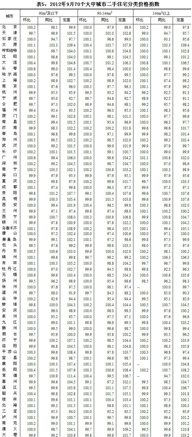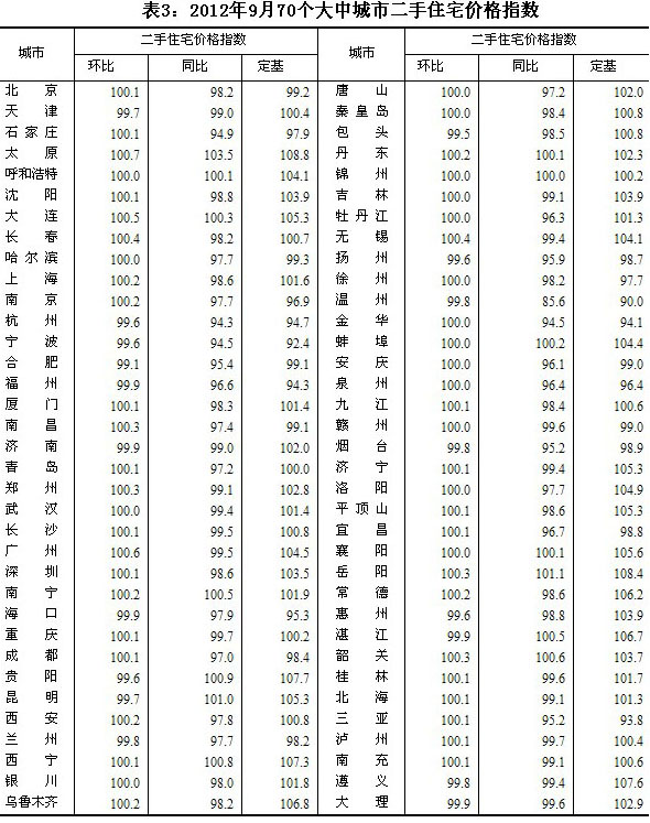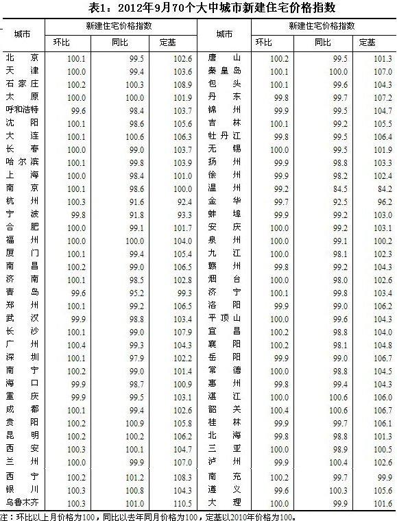 2012年9月份70個(gè)大中城市住宅銷售價(jià)格變動(dòng)情況