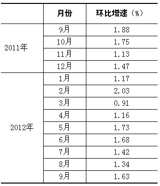 根據(jù)季節(jié)調整模型自動修正程序,對2011年9月份以來的固定資產投資(不含農戶)環(huán)比增速進行修訂。修訂結果及9月份環(huán)比數(shù)據(jù)如下: