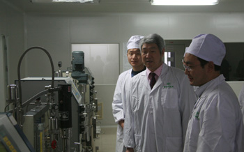 魯南制藥集團董事長趙志全在指導(dǎo)科研人員 |