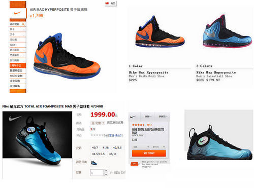 MAX的耐克男子籃球鞋,在天貓商城的耐克官方旗艦店的售價更是高達1999元人民幣。而在其美國官網(wǎng)上,該產(chǎn)品的售價同樣僅為225美元,約合人民幣1409元。該產(chǎn)品在國內(nèi)的售價也高出其在美國售價的40%。