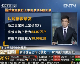經(jīng)觀黃利明:今日,浙江世寶上市首日漲幅已520.15%,券商估平均價(jià)4.85元,現(xiàn)股價(jià)卻已飆至16元。其港股昨日收盤2.72港元(合人民幣2.19元)。今天又發(fā)盈利預(yù)測(cè)——全年凈利潤(rùn)降30%,測(cè)算今年每股收益為0.285元,其市盈率已達(dá)57倍,但中小板平均市盈率為30倍,以此測(cè)算極限的合理價(jià)也僅為8.55?蓱z的小散,被忽悠。