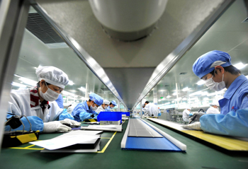 這是2011年5月17日拍攝的江西賽維BEST薄膜太陽(yáng)能電池生產(chǎn)車(chē)間。新華社發(fā) |