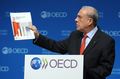 總部位于巴黎的經濟合作與發(fā)展組織(簡稱經合組織)27日發(fā)布新版“經濟展望報告”。經合組織秘書長安赫爾·古里亞當日在發(fā)布會上表示,全球經濟明年將出現(xiàn)顯著下滑,而歐債危機“當前仍是世界經濟最大威脅”。古里亞指出,盡管各國已采取應對措施,但一些國家的債務永久化問題有可能引發(fā)連鎖事件,將全球經濟拖入衰退之中。經合組織在報告中下調了全球經濟增長預期,預計今年全球經濟僅增長2.9%,明年增幅為3.4%。此外,經合組織還預期,美國今年經濟增速由此前預計的2.6%降至2.2%,2013年增速將降至2.0%。