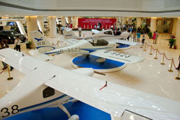 二、商務(wù)機展區(qū),是由無限航空打造的中國首家私人飛機展銷交易中心,分為商務(wù)機體驗區(qū)、飛行用品商店、小型飛機實物展示等部分;