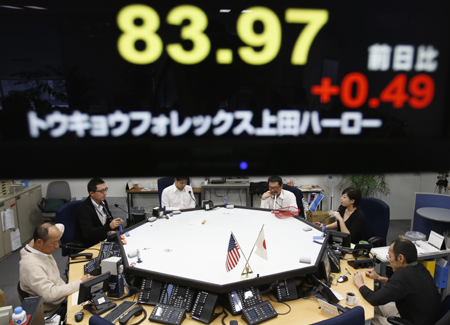因市場(chǎng)預(yù)期重新上臺(tái)執(zhí)政的日本自由民主黨將促使日本央行采取更為激進(jìn)的寬松貨幣政策,17日,東京外匯市場(chǎng)上日元對(duì)美元的匯價(jià)跌至1年半以來(lái)最低水平,一度降到84.48日元比1美元。