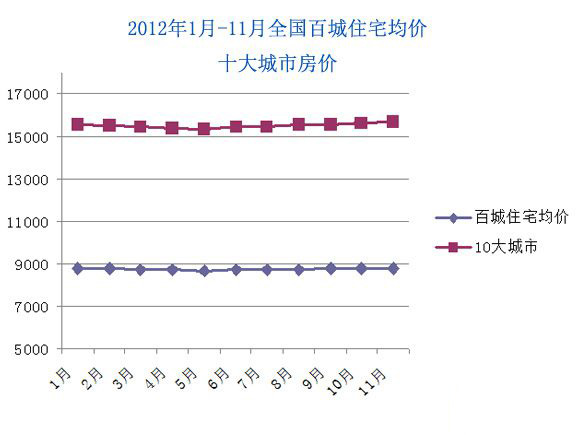 數(shù)據(jù)來源:中指院2012年1月-11月中國(guó)房地產(chǎn)指數(shù)系統(tǒng)百城價(jià)格指數(shù)報(bào)告