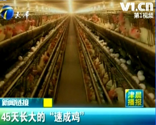 | 央視對(duì)山東青島、濰坊、臨沂、棗莊等地的“速生雞”養(yǎng)殖場(chǎng)調(diào)查發(fā)現(xiàn),為避免雞生病或死亡,白羽雞從第1天入欄到第40天出欄,至少要吃18種抗生素藥物,“雞把抗生素當(dāng)飯吃,停藥期成擺設(shè)”。