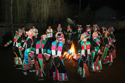 節(jié)日里活動內(nèi)容豐富多彩,除夕之夜,老人以酒、肉、粑粑祭祀天地祖先神靈,為感謝耕牛一年勞作,家犬給人類帶來谷種,先給它們品嘗一點(diǎn)年節(jié)食品。人們身著節(jié)日盛裝,來到選定的場址,聚集在一起吹笙、笛,彈篾弦、三弦等樂器,載歌載舞,通宵達(dá)旦,歡慶佳節(jié)。