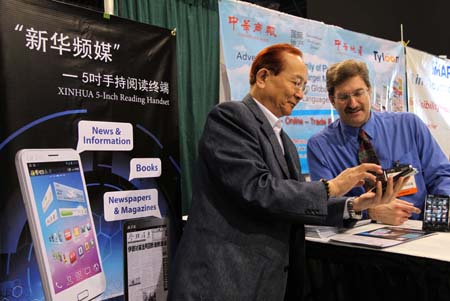 日前,在拉斯韋加斯國際消費(fèi)電子展上,眾多企業(yè)推出各式各樣的手機(jī)及相關(guān)產(chǎn)品。一款由新華社新聞信息中心推出的注重資訊功能的“新華頻媒”手機(jī)展出后吸引了一些業(yè)界人士和參觀者的注意。